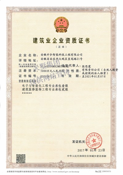 電子與智能化工程專業承包壹級資質