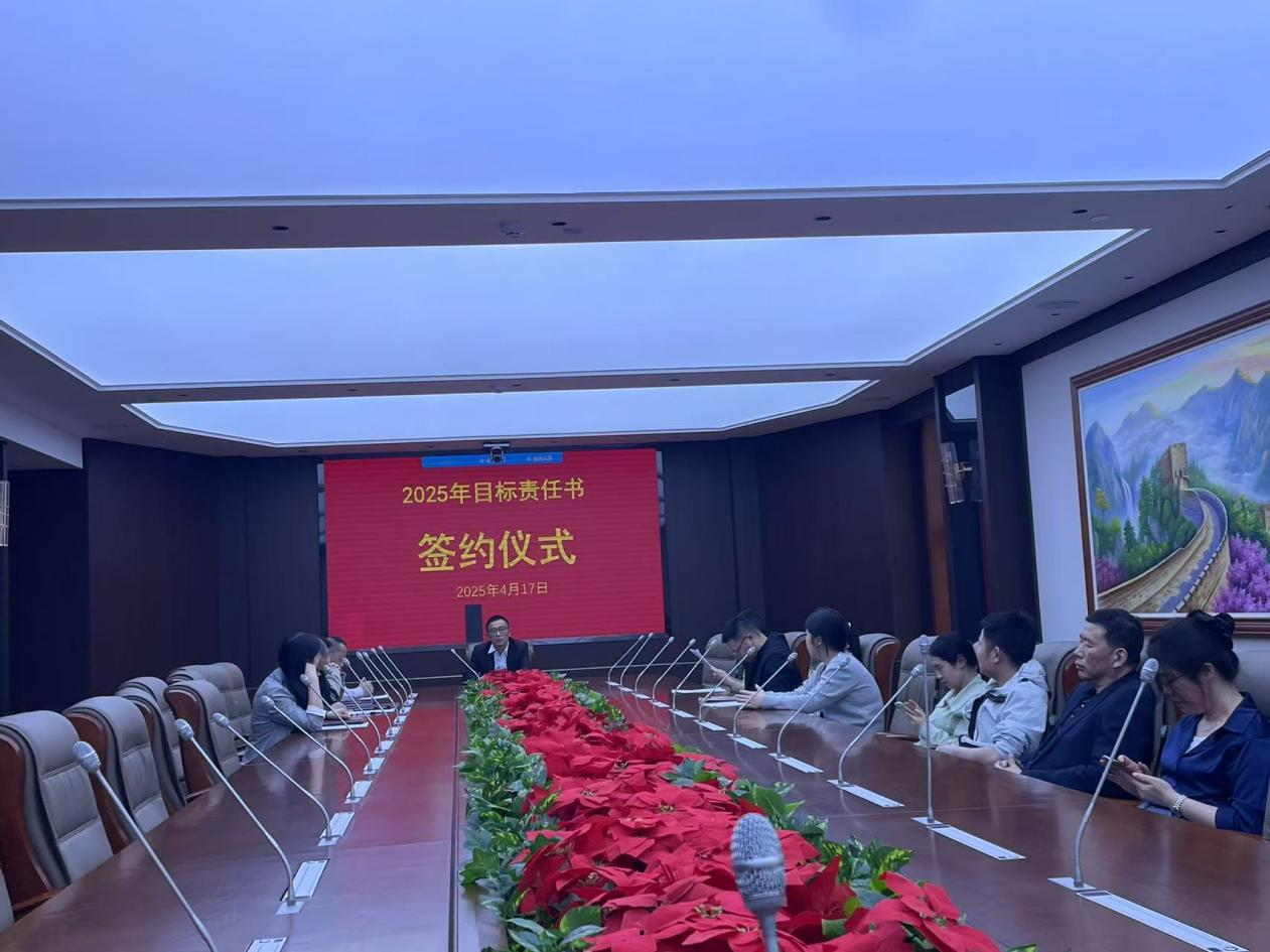 為明確本年度發展目標,強化責任落實,推動公司高質量發展,4月17日下午5點,公司在7樓中會議室舉行了2025年目標責任書簽訂儀式。公司行政部代表出席儀式,共同見證經營部、造價部、風控中心三大核心部門年度目標的莊嚴簽訂。