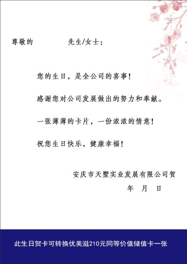 一貫視員工為最大財(cái)富的天墅公司,每年為每位員工慶生,是公司多年的習(xí)俗,一直不曾改變,不論職位高低、不論工齡長(zhǎng)短。每年在員工生日當(dāng)天,工會(huì)都會(huì)通過(guò)電話及生日禮物等方式獻(xiàn)上真誠(chéng)祝福。這小小祝福體現(xiàn)了公司‘以人為本’的人文關(guān)懷,一份溫馨的祝福,一句真摯的問(wèn)候,都寄托了公司對(duì)員工殷切的祝愿與期望,讓員工感受到來(lái)自企業(yè)的溫暖和情誼。